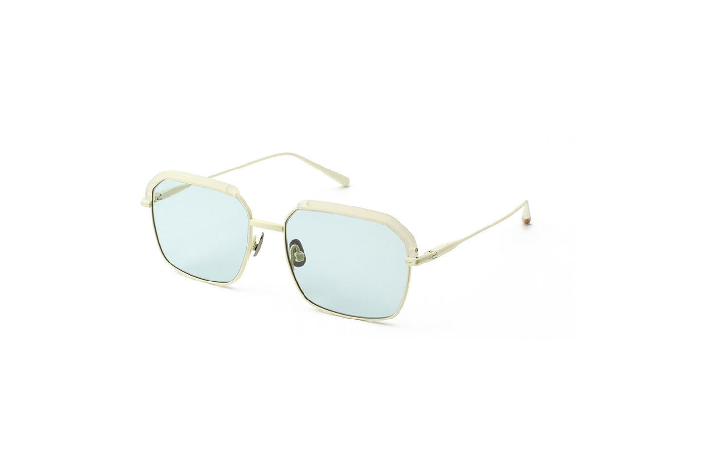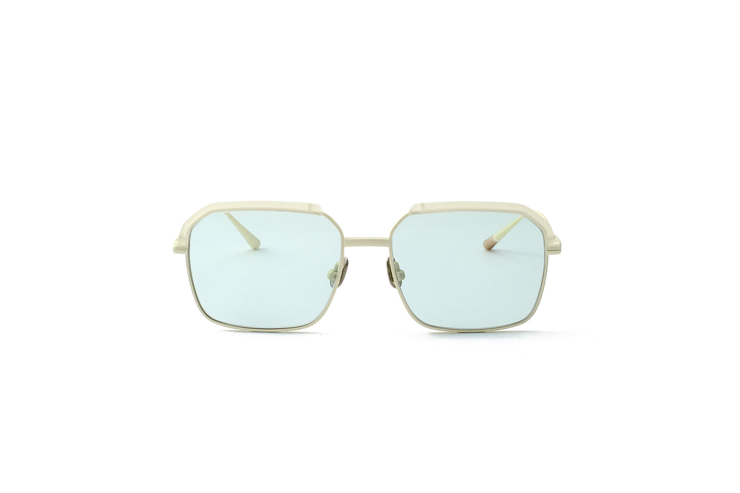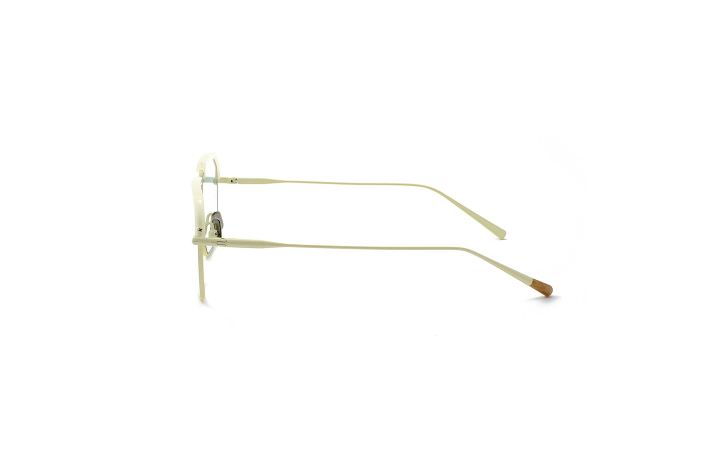 アセテートのブローパーツが着いたメタルのスクエアフレーム。細いテンプルとブローパーツも主張が強くならないような太さ、形状、色に調整をする事でモダンなイメージのモデル。